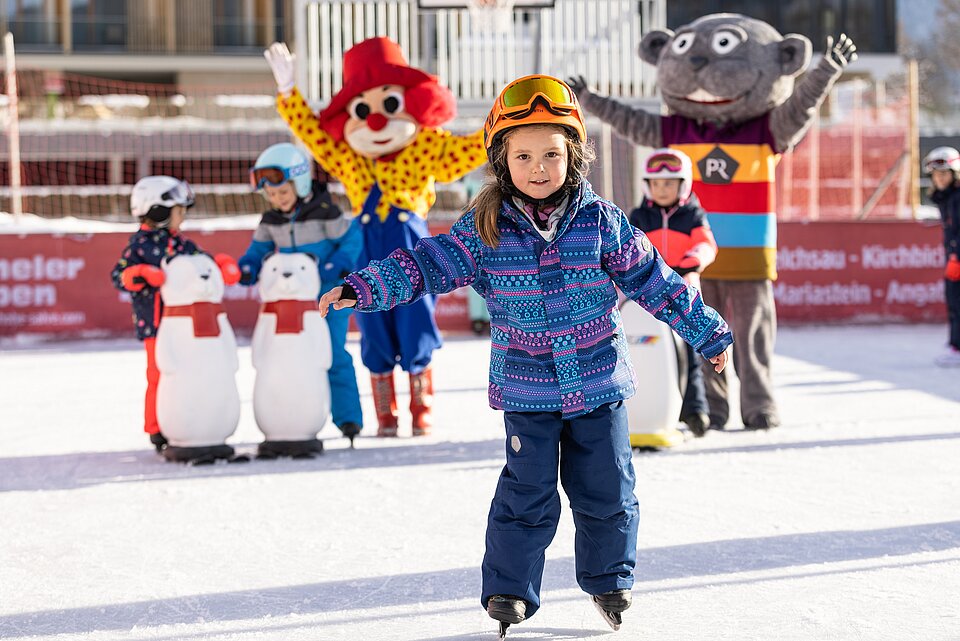 Eislaufen ist ein besonderes Vergnügen im Winterurlaub. Das Hopfgarten Aparthotel verwandelt seinen Multifunktionsspielplatz im Winter zum Eislaufplatz direkt am Haus. Erwachsene und Kinder können Schlittschuhe und Eislauf-Lernhilfen leihen und los geht es! Ob entspanntes Gleiten und Plaudern oder Eiskunstlauf – das Vergnügen auf Kufen wird in Hopfgarten großgeschrieben.