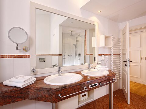 - Badezimmer (Doppelwaschbecken, Badewanne, Duschkabine)